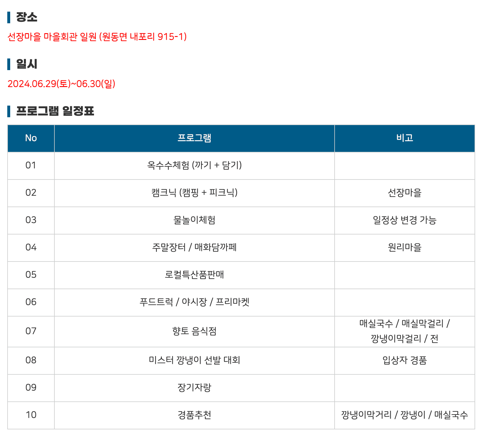 경남 양산시 원동면 일대에서 특산품인 산딸기, 매실, 옥수수 관련 축제이다.