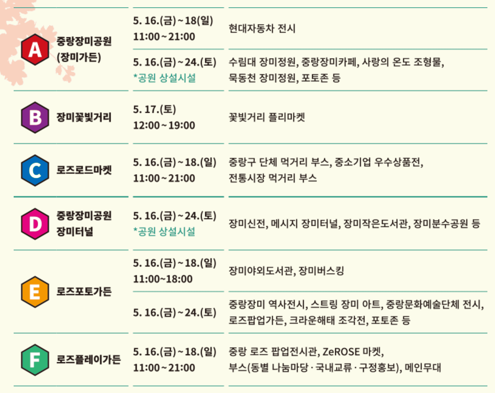 🟦 5월 19일(월)~5월 24일(토): 중랑장미주간